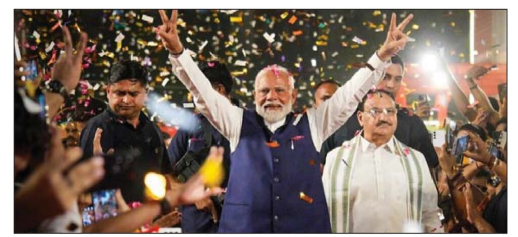 नयी दिल्ली(एजेंसी)04June,2024 – भारतीय जनता पार्टी (भाजपा) के नेतृत्व वाले राष्ट्रीय जनतांत्रिक गठबंधन (राजग) ने लोकसभा चुनाव में लगातार तीसरी बार जीत दर्ज की है लेकिन कांग्रेस और अन्य विपक्षी दलों के इंडिया समूह की कड़ी चुनौती और अप्रत्याशित प्रदर्शन के चलते भाजपा अकेले दम पर बहुमत हासिल करने में विफल रही है।