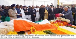 चंडीगढ़/संघोल-टाइम्स/नागपाल/21-दिसंबर,2024 – भारत के उपराष्ट्रपति श्री जगदीप धनखड़ व उनकी धर्मपत्नी डॉ सुदेश धनखड़ शनिवार को जिला सिरसा के तेजा खेड़ा फार्म, चौटाला में पहुंचकर हरियाणा के पूर्व मुख्यमंत्री चौधरी ओम प्रकाश चौटाला के अंतिम संस्कार में शामिल हुए। उन्होंने पार्थिव शरीर के अंतिम दर्शन कर उन्हें श्रद्धासुमन अर्पित किए।