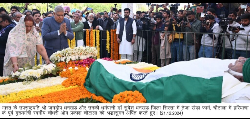उपराष्ट्रपति जगदीप धनखड़ सहित कई बड़े नेताओं ने पूर्व मुख्यमंत्री स्वर्गीय ओम प्रकाश चौटाला को दी श्रद्धांजलि