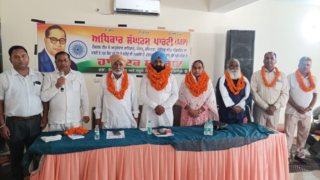 ਸ੍ਰੀ-ਫਤਿਹਗੜ੍ਹ-ਸਾਹਿਬ/SANGHOL-TIMES/IQBAL-SIMGH/21JUNE,2025 – ਮਿੱਤੀ 21/06/2025 ਨੂੰ ਅਧਿਕਾਰ ਸ਼ੰਘਰਸ਼ ਪਾਰਟੀ ਨੇ ਆਪਣੇ 100ਵੇਂ ਦਿਨ ਤੇ ਸ਼ਹੀਦਾਂ ਦੀ ਸਰਜਮੀਨ ਗੁਰਦੁਆਰਾ ਫਤਿਹਗੜ੍ਹ ਸਾਹਿਬ ਵਿੱਚ, ਮਾਤਾ ਗੁਜਰ ਕੌਰ ਜੀ,ਬਾਬਾ ਜੋਰਾਵਰ ਸਿੰਘ, ਬਾਬਾ ਫਤਿਹ ਸਿੰਘ, ਬਾਬਾ ਬੰਦਾ ਸਿੰਘ ਬਹਾਦਰ, ਬਾਬਾ ਮੋਤੀ ਰਾਮ ਮਹਿਰਾ ਜੀ ਨੂੰ ਨਤਮਸਤਕ ਹੋਣ ਅਤੇ ਪਾਰਟੀ ਦੀ ਚੜਦੀ ਕਲਾ ਲਈ ਅਰਦਾਸ ਕਰਨ ਉਪਰੰਤ। ਆਰ ਕੇ ਐਮ ਗੈਸਟ ਹਾਊਸ ਵਿੱਚ ਵਰਕਰਾਂ ਦੇ ਵੱਡੇ ਇਕੱਠ ਨੂੰ ਸੰਬੋਧਨ ਹੁੰਦਿਆਂ ਪਾਰਟੀ ਪ੍ਰਧਾਨ ਇੰਜ ਗੁਰਬਖਸ਼ ਸਿੰਘ ਸ਼ੇਰਗਿੱਲ ਕਿਹਾ ਕਿ ਪਾਰਟੀ ਵਿੱਚ ਅੱਜ ਤਿੰਨ ਜਿਲਿਆਂ ਮੋਹਾਲੀ, ਫਤਹਿਗੜ੍ਹ ਸਾਹਿਬ, ਰੋਪੜ ਅਤੇ ਚੰਡੀਗੜ੍ਹ ਦੇ ਬੁਧੀਜੀਵੀ ਅਤੇ ਰਾਜਨੀਤਕ ਤੁਜੱਰਬਾ ਰੱਖਣ ਵਾਲੇ ਲੋਕਾਂ ਨੇ ਅਧਿਕਾਰ ਸ਼ੰਘਰਸ਼ ਪਾਰਟੀ ਨੂੰ ਜਾਇਨ ਕੀਤਾ ਹੈ।ਪਾਰਟੀ ਦੀ ਸੀਨੀ ਮੀਤ ਪ੍ਰਧਾਨ ਸਤਵੀਰ ਕੌਰ ਮਨਹੇੜਾ ਨੇ ਨਵੇਂ ਨਿਯੁਕਤ ਹੋਏ ਅਹੁਦੇਦਾਰਾਂ ਨੂੰ ਵਧਾਈ ਦਿੰਦੇ ਕਿਹਾ ਕਿ 2027 ਦੀ ਚੋਣ ਵਿੱਚ ਏਐਸਪੀ ਲੋਕਾਂ ਦੇ ਸਹਿਯੋਗ ਨਾਲ ਪੰਜਾਬ ਵਿੱਚ ਸਰਕਾਰ ਬਣਾਏਗੀ। ਪੰਜਾਬ ਪ੍ਰਧਾਨ ਇੰਜ ਸੁਰਿੰਦਰ ਸਿੰਘ ਭਿੰਡਰ ਨੇ ਟੈਲੀਫੋਨ ਸੰਦੇਸ਼ ਰਾਂਹੀ ਨਵੇਂ ਪਾਰਟੀ ਜਾਇਨ ਕਰਨ ਵਾਲਿਆ ਨੂੰ ਵਧਾਈ ਦਿੰਦਿਆ ਸਭ ਨੂੰ ਜਨਤਾ ਦੀ ਭਲਾਈ ਲਈ ਕੰਮ ਵਿੱਚ ਜੁੱਟ ਜਾਣ ਲਈ ਕਿਹਾ।