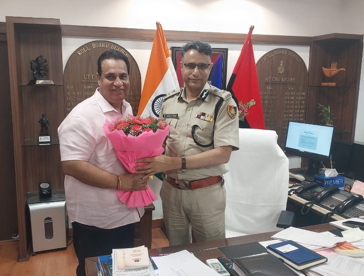 Chandigarh/SANGHOL-TIMES/ KEWAL-BHARTI/August06,2025- H.S. Lucky, President of the Chandigarh Pradesh Congress Committee, today met the newly appointed Director General of Police (DGP), Chandigarh, Dr. Sagar Preet Hooda, and extended his best wishes for a successful and people-centric tenure.