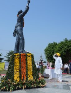 Earlier, the Chief Minister laid a wreath at the statue of Shaheed-e-Azam Bhagat Singh and also paid floral tributes at the memorial of the great martyr’s father, Sardar Kishan Singh. He also patted Diksha Raju, a 11th class student from Majara Deengrian who had made a Rangoli with the picture of the legendary martyr.