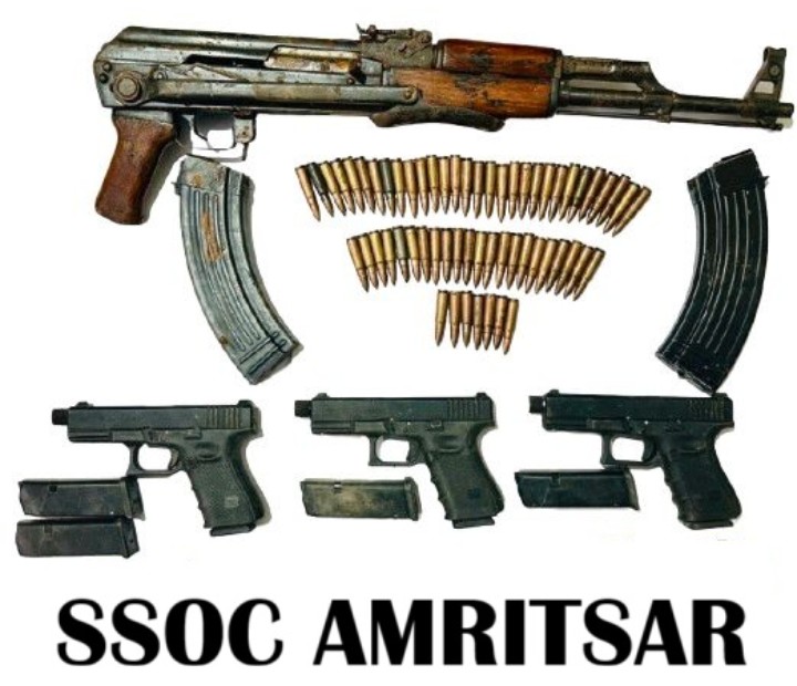 CHANDIGARH/AMRITSAR/SANGHOL-TIMES/14OCT ,2025- In a major breakthrough amidst the ongoing special checking and special operations to ensure safe and peaceful festive season as per directions of Chief Minister Bhagwant Singh Mann, State Special Operation Cell (SSOC) Amritsar has apprehended three persons and recovered yet another weapons consignment comprising one AK-47 rifle along with two magazines and 60 live cartridges and three 9MM Glock pistols along with seven magazines and 50 live cartridges from their possession, said Director General of Police (DGP) Punjab Gaurav Yadav here on Tuesday.