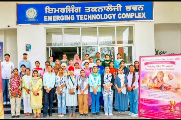 ਸ੍ਰੀ ਗੁਰੂ ਗ੍ਰੰਥ ਸਾਹਿਬ ਵਰਲਡ ਯੂਨੀਵਰਸਿਟੀ, ਫਤਿਹਗੜ੍ਹ ਸਾਹਿਬ ਦੇ ਅੰਗਰੇਜ਼ੀ ਵਿਭਾਗ ਨੇ ਅੰਤਰਰਾਸ਼ਟਰੀ ਮਹਿਲਾ ਦਿਵਸ ਨੂੰ ਸਮਰਪਿਤ “ਸਿੱਖ ਔਰਤ: ਅੰਗਰੇਜ਼ੀ ਸਾਹਿਤ ਵਿੱਚ ਬਿਰਤਾਂਤ” ਸਿਰਲੇਖ ਹੇਠ ਇੱਕ ਅੰਤਰ-ਵਿਭਾਗੀ ਮੁਕਾਬਲਾ ਕਰਵਾਇਆ। ਇਸ ਸਮਾਗਮ ਦਾ ਉਦੇਸ਼ ਅੰਗਰੇਜ਼ੀ ਸਾਹਿਤ ਵਿੱਚ ਸਿੱਖ ਔਰਤਾਂ ਦੀ ਪ੍ਰਤੀਨਿਧਤਾ ਨੂੰ ਆਲੋਚਨਾਤਮਕ ਤੌਰ ‘ਤੇ ਸ਼ਾਮਲ ਕਰਨਾ ਸੀ।