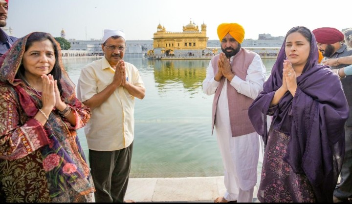 अदालत द्वारा ईमानदारी साबित होने के बाद अरविंद केजरीवाल ने मुख्यमंत्री भगवंत सिंह मान के साथ सच्चखंड श्री हरिमंदिर साहिब में माथा टेका
