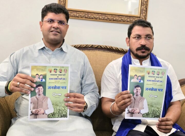 दुष्यंत चौटाला और चंद्रशेखर ने जेजेपी-एएसपी का जनसेवा पत्र के नाम से जारी किया घोषणा पत्र जेजेपी-एएसपी...