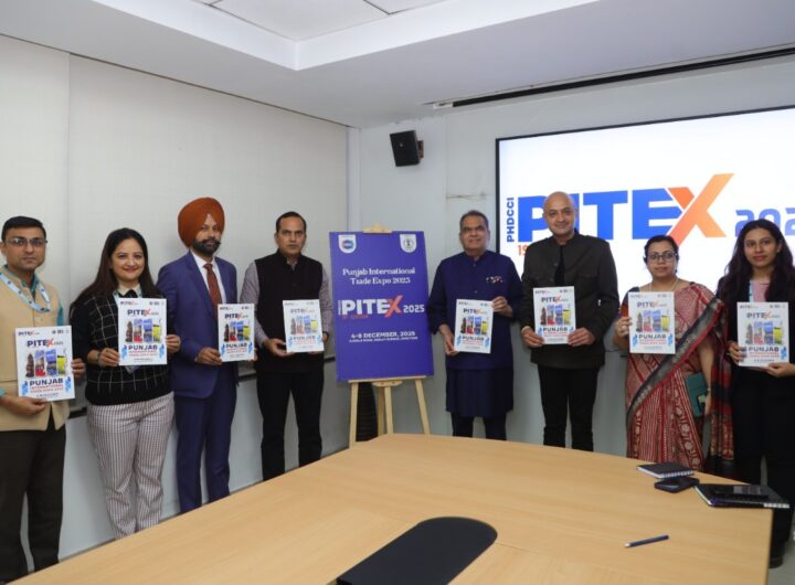 पंजाब के उद्योग मंत्री संजीव अरोड़ा ने पीएचडीसीसीआई के चेयर करण गिल्होत्रा के साथ पाईटैक्स-2025 का लोगो...